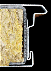 Konstruktionen med flera lager stålplåt och mineralull ger Säkerhets- dörren dess ljudadsor-berande egenskaper samtidigt som den skyddar mot brand spridning.