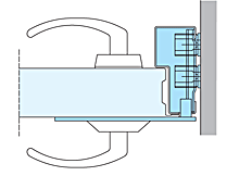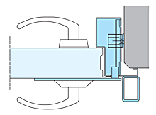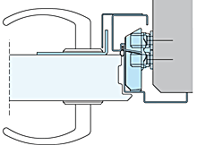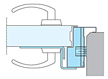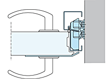 Brytskydd på gångjärnssida för icke foderbildande karm. Dörren bör monteras försänkt i vägglivet.